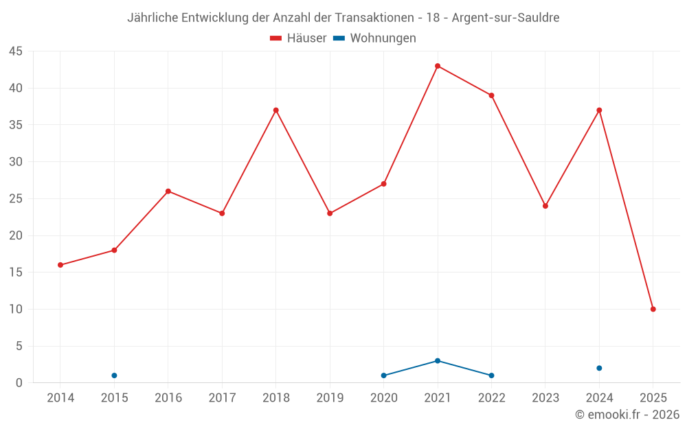 Der Durchschnittspreis auf den 38 Hausgeschäften der letzten 12 Monate in der Gemeinde Argent-sur-Sauldre betrug 1 122 € pro Quadratmeter für einen mittleren Immobilienwert von 91 500 €. Über diesen Zeitraum hinweg lagen 60% der Transaktionen zwischen 873 und 1 486 € pro Quadratmeter (vom 2. bis zum 8. Dezil).