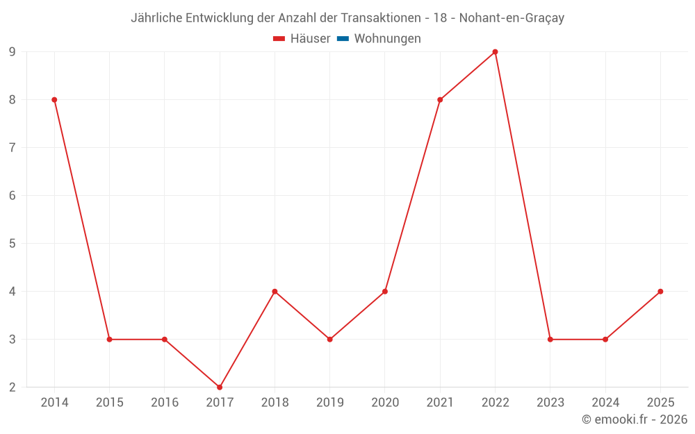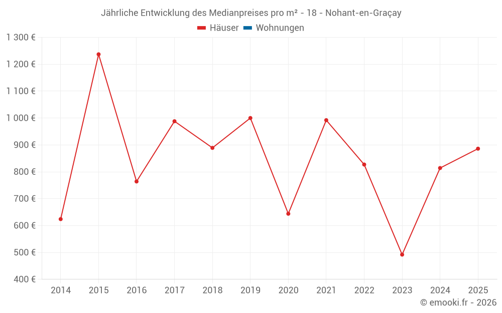 Der Preis pro m² von Häusern ist seit 4 Jahren um 11% gesunken, aber er ist in 11 Jahren um 42% gestiegen.