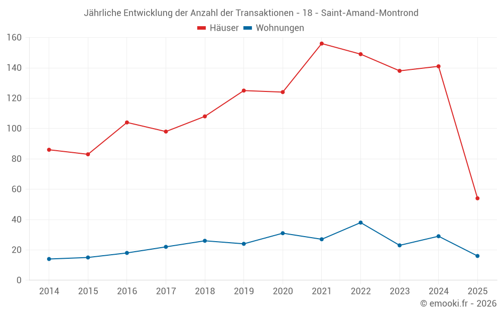 Der Durchschnittspreis auf den 26 Wohnungstransaktionen der letzten 12 Monate in der Gemeinde Saint-Amand-Montrond betrug 819 € pro Quadratmeter für einen mittleren Immobilienwert von 54 750 €. Über diesen Zeitraum hinweg lagen 60% der Transaktionen zwischen 596 und 1 190 € pro Quadratmeter (vom 2. bis zum 8. Dezil).