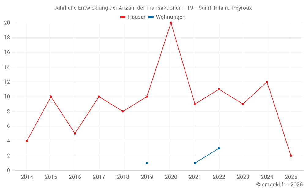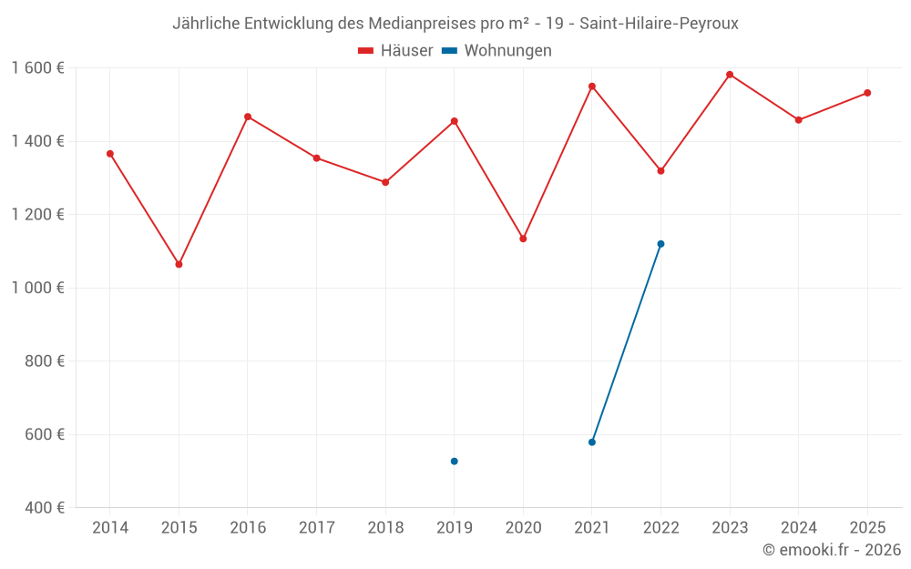 Der Durchschnittspreis auf den 20 Hausgeschäften der letzten 24 Monate in der Gemeinde Saint-Hilaire-Peyroux betrug 1 504 € pro Quadratmeter für einen mittleren Immobilienwert von 159 210 €. Über diesen Zeitraum hinweg lagen 60% der Transaktionen zwischen 1 008 und 1 954 € pro Quadratmeter (vom 2. bis zum 8. Dezil).