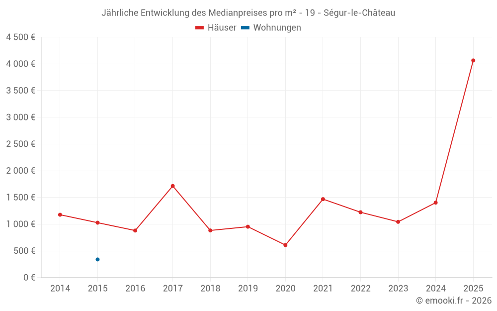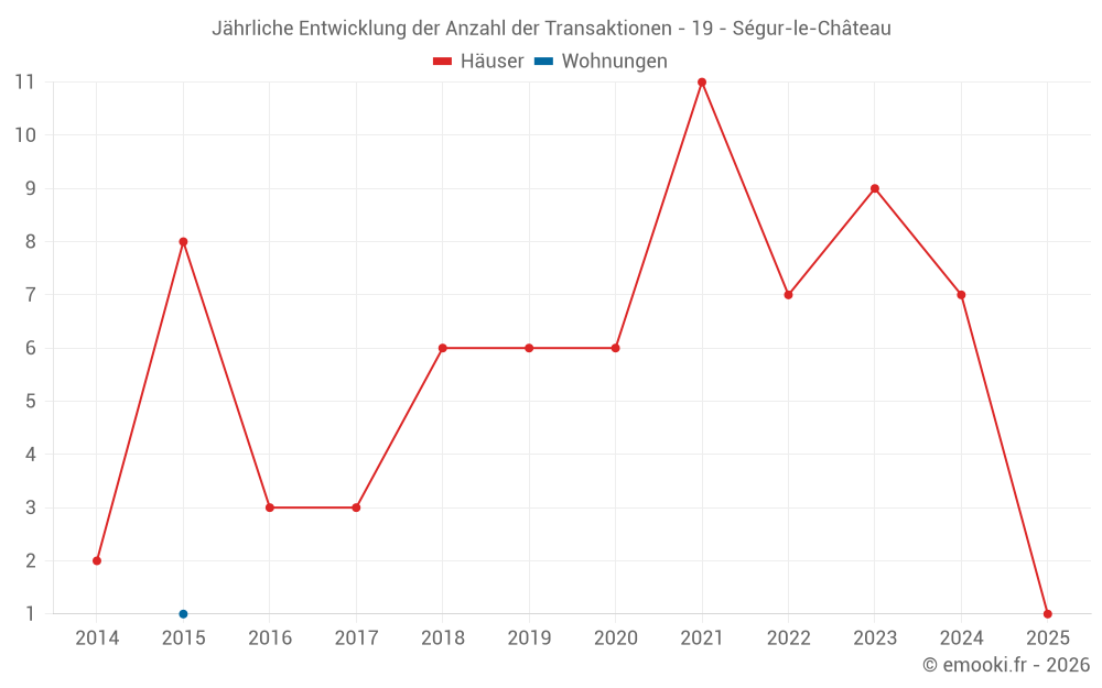 Der Durchschnittspreis auf den 14 Hausgeschäften der letzten 24 Monate in der Gemeinde Ségur-le-Château betrug 1 226 € pro Quadratmeter für einen mittleren Immobilienwert von 124 000 €. Über diesen Zeitraum hinweg lagen 60% der Transaktionen zwischen 787 und 1 869 € pro Quadratmeter (vom 2. bis zum 8. Dezil).