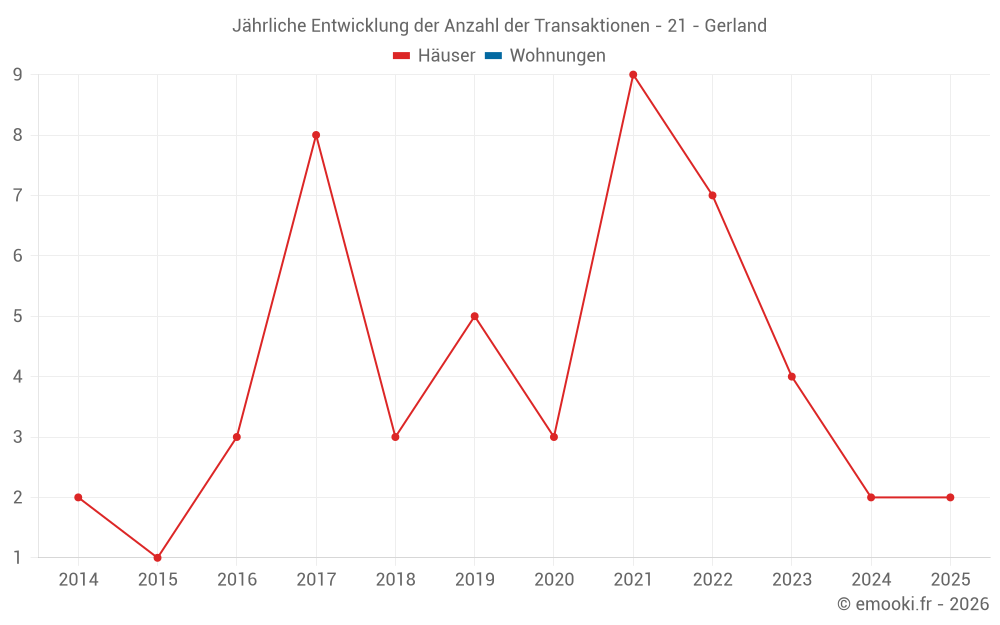 Karte der Immobilienpreise in der Gemeinde Gerland, wählen Sie einen Abschnitt, um Transaktionen nach Parzelle zu sehen.