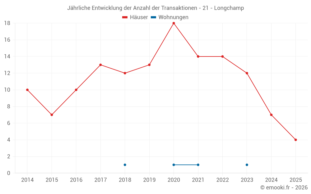 Der Durchschnittspreis auf den 17 Hausgeschäften der letzten 24 Monate in der Gemeinde Longchamp betrug 2 280 € pro Quadratmeter für einen mittleren Immobilienwert von 221 300 €. Über diesen Zeitraum hinweg lagen 60% der Transaktionen zwischen 1 719 und 2 480 € pro Quadratmeter (vom 2. bis zum 8. Dezil).
