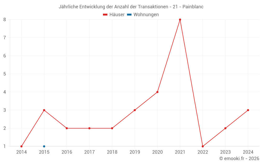 Karte der Immobilienpreise in der Gemeinde Painblanc, wählen Sie einen Abschnitt, um Transaktionen nach Parzelle zu sehen.