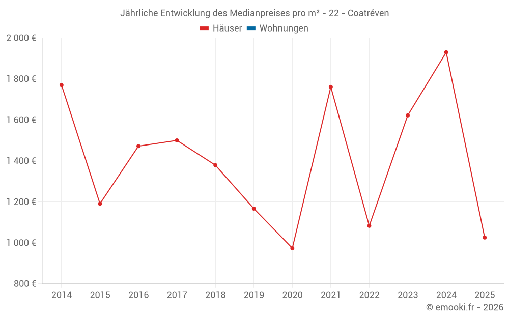 Entwicklung des Medianpreises pro m² von Häusern