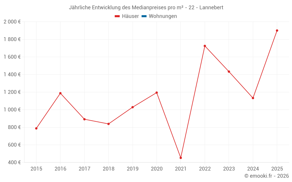 Entwicklung des Medianpreises pro m² von Häusern