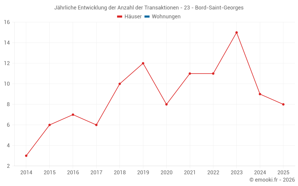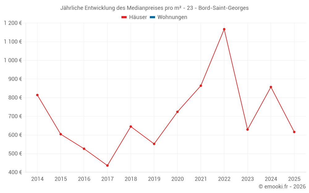 Der Durchschnittspreis auf den 21 Hausgeschäften der letzten 24 Monate in der Gemeinde Bord-Saint-Georges betrug 857 € pro Quadratmeter für einen mittleren Immobilienwert von 60 000 €. Über diesen Zeitraum hinweg lagen 60% der Transaktionen zwischen 357 und 1 325 € pro Quadratmeter (vom 2. bis zum 8. Dezil).