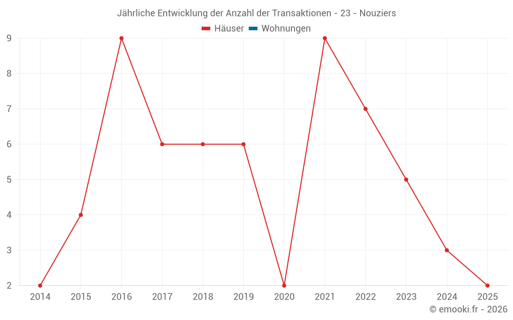 Karte der Immobilienpreise in der Gemeinde Nouziers, wählen Sie einen Abschnitt, um Transaktionen nach Parzelle zu sehen.