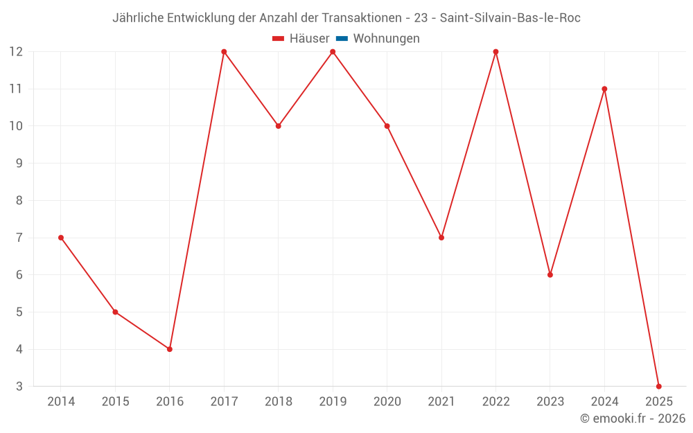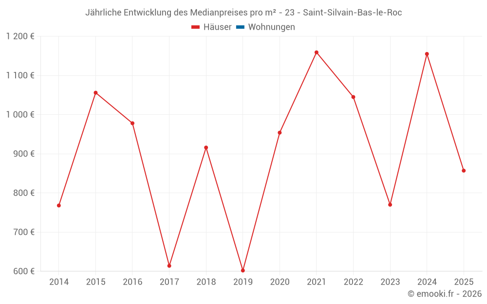 Der Durchschnittspreis auf den 17 Hausgeschäften der letzten 24 Monate in der Gemeinde Saint-Silvain-Bas-le-Roc betrug 1 136 € pro Quadratmeter für einen mittleren Immobilienwert von 82 000 €. Über diesen Zeitraum hinweg lagen 60% der Transaktionen zwischen 830 und 1 532 € pro Quadratmeter (vom 2. bis zum 8. Dezil).