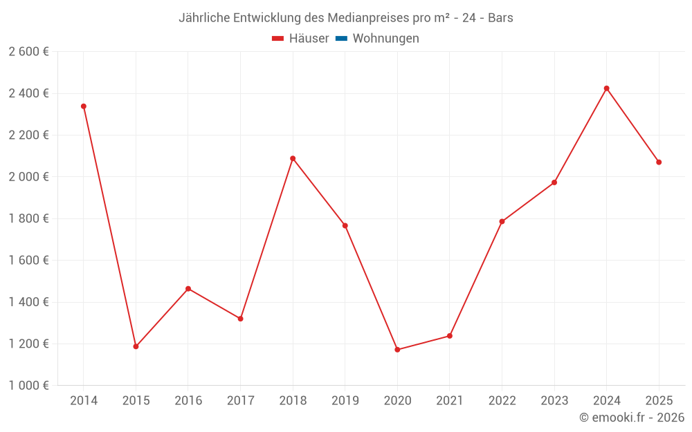 Karte der Immobilienpreise in der Gemeinde Bars, wählen Sie einen Abschnitt, um Transaktionen nach Parzelle zu sehen.