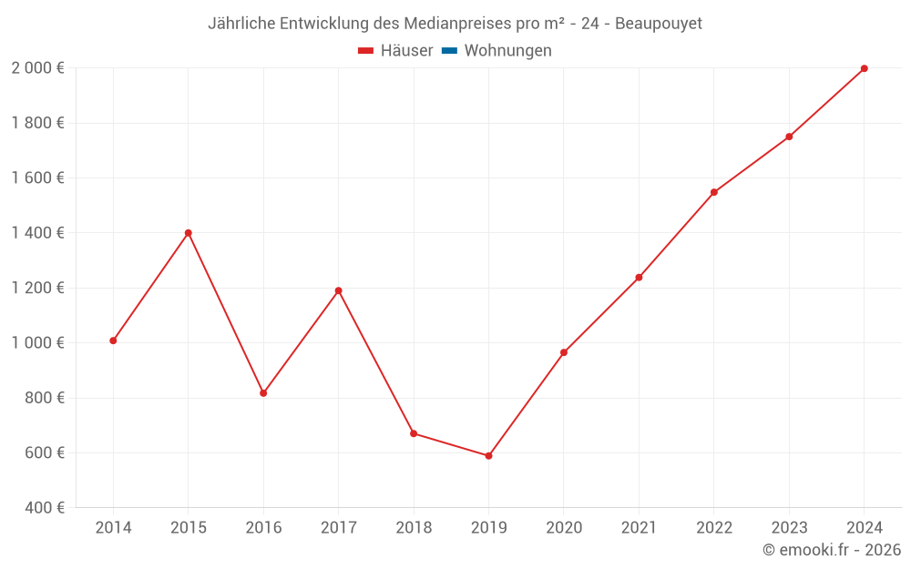 Karte der Immobilienpreise in der Gemeinde Beaupouyet, wählen Sie einen Abschnitt, um Transaktionen nach Parzelle zu sehen.