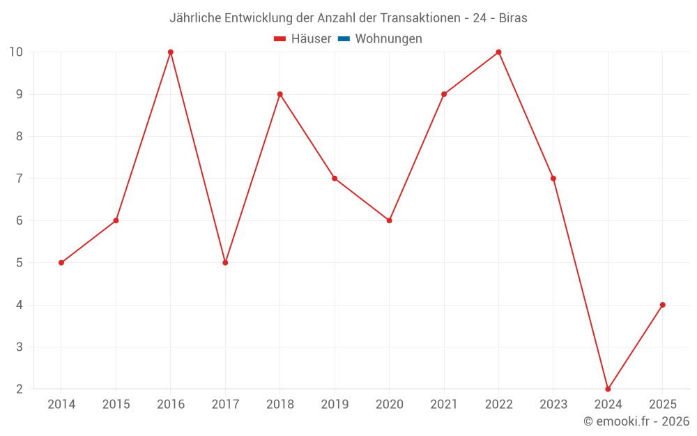Karte der Immobilienpreise in der Gemeinde Biras, wählen Sie einen Abschnitt, um Transaktionen nach Parzelle zu sehen.