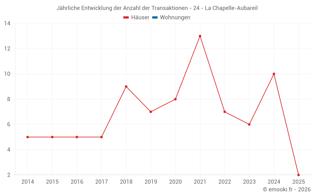 Der Durchschnittspreis auf den 17 Hausgeschäften der letzten 24 Monate in der Gemeinde La Chapelle-Aubareil betrug 1 995 € pro Quadratmeter für einen mittleren Immobilienwert von 180 000 €. Über diesen Zeitraum hinweg lagen 60% der Transaktionen zwischen 1 250 und 2 816 € pro Quadratmeter (vom 2. bis zum 8. Dezil).