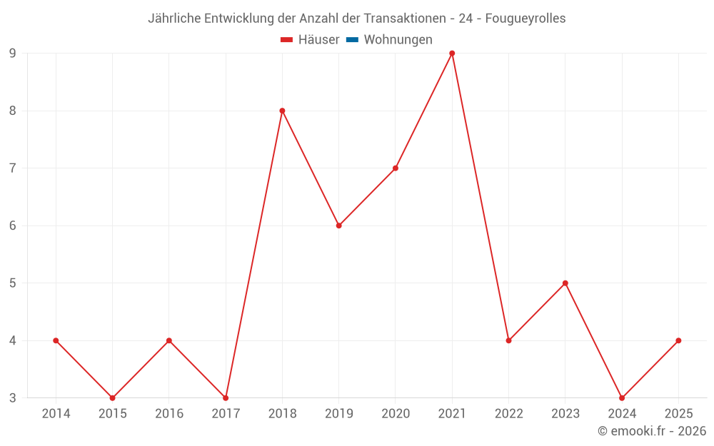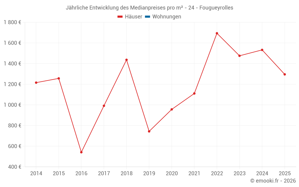 Der Preis pro m² von Häusern ist seit 3 Jahren um 23% gesunken, aber er ist in 9 Jahren um 139% gestiegen.