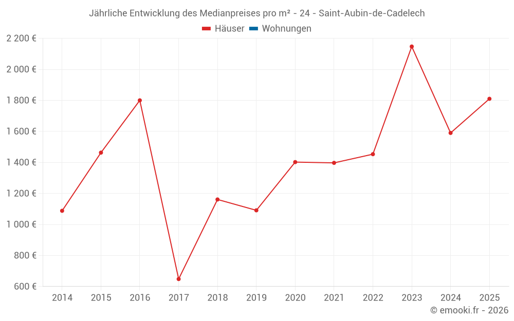 Der Preis pro m² von Häusern ist seit 2 Jahren um 16% gesunken, aber er ist in 6 Jahren um 66% gestiegen.