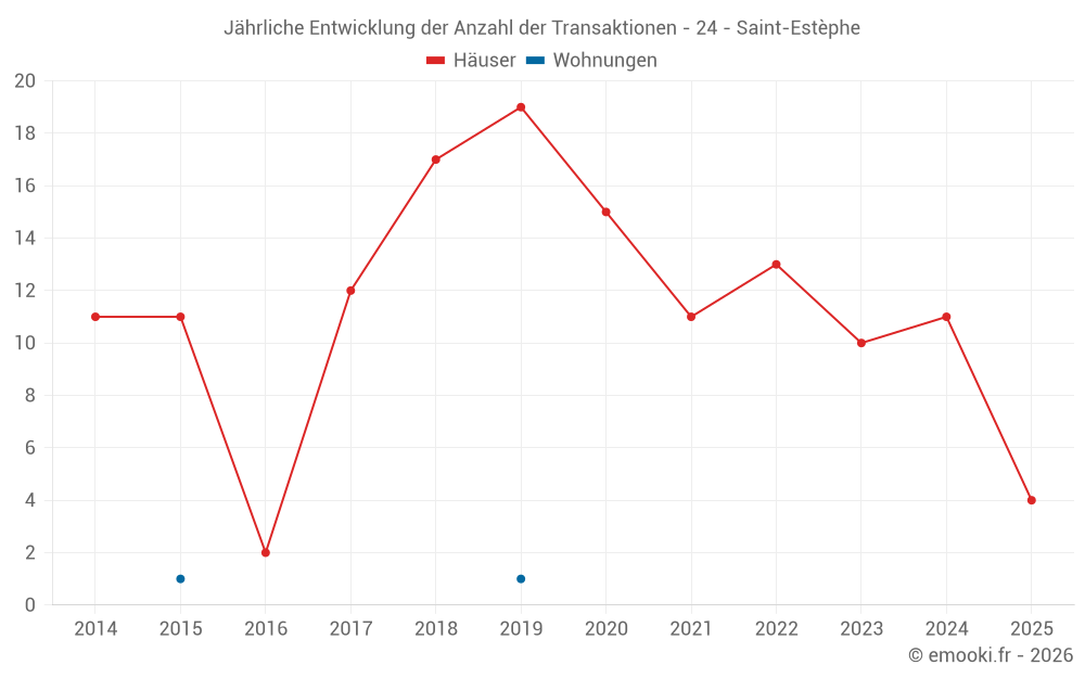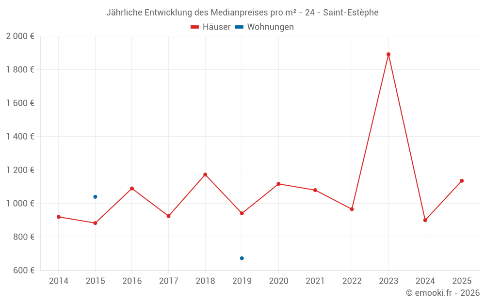 Der Durchschnittspreis auf den 18 Hausgeschäften der letzten 24 Monate in der Gemeinde Saint-Estèphe betrug 1 168 € pro Quadratmeter für einen mittleren Immobilienwert von 137 500 €. Über diesen Zeitraum hinweg lagen 60% der Transaktionen zwischen 723 und 1 827 € pro Quadratmeter (vom 2. bis zum 8. Dezil).