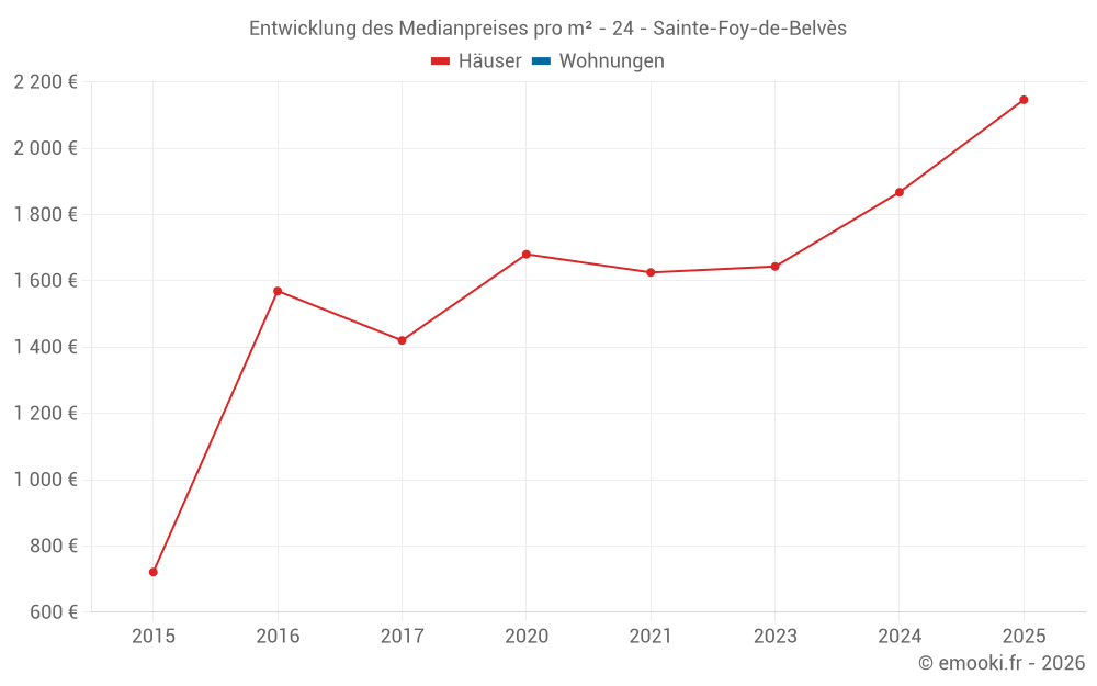 Werte der Preispercentile pro m² über die für den geschätzten Preis jeder Art von Immobilie verwendeten Zeiträume.