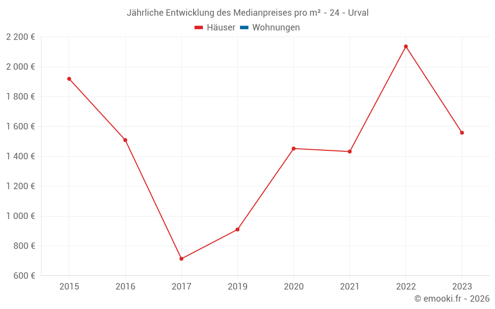 Entwicklung des Medianpreises pro m² von Häusern