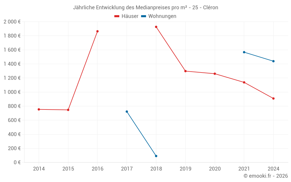 Karte der Immobilienpreise in der Gemeinde Cléron, wählen Sie einen Abschnitt, um Transaktionen nach Parzelle zu sehen.