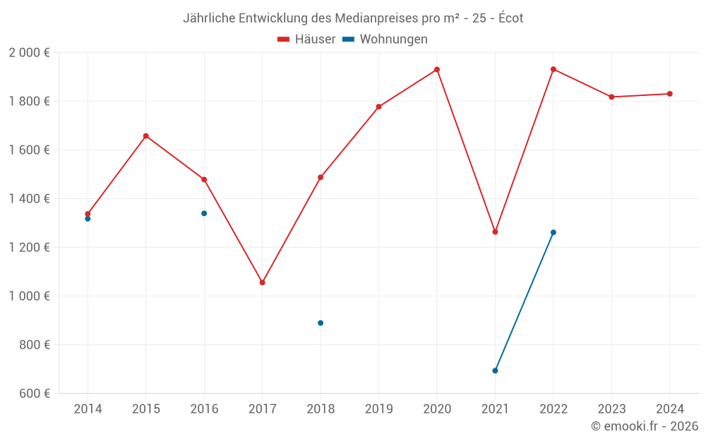 Karte der Immobilienpreise in der Gemeinde Écot, wählen Sie einen Abschnitt, um Transaktionen nach Parzelle zu sehen.