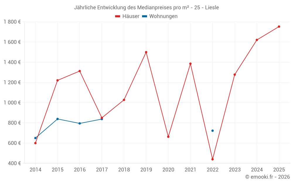 Entwicklung des Medianpreises pro m² von Wohnungen