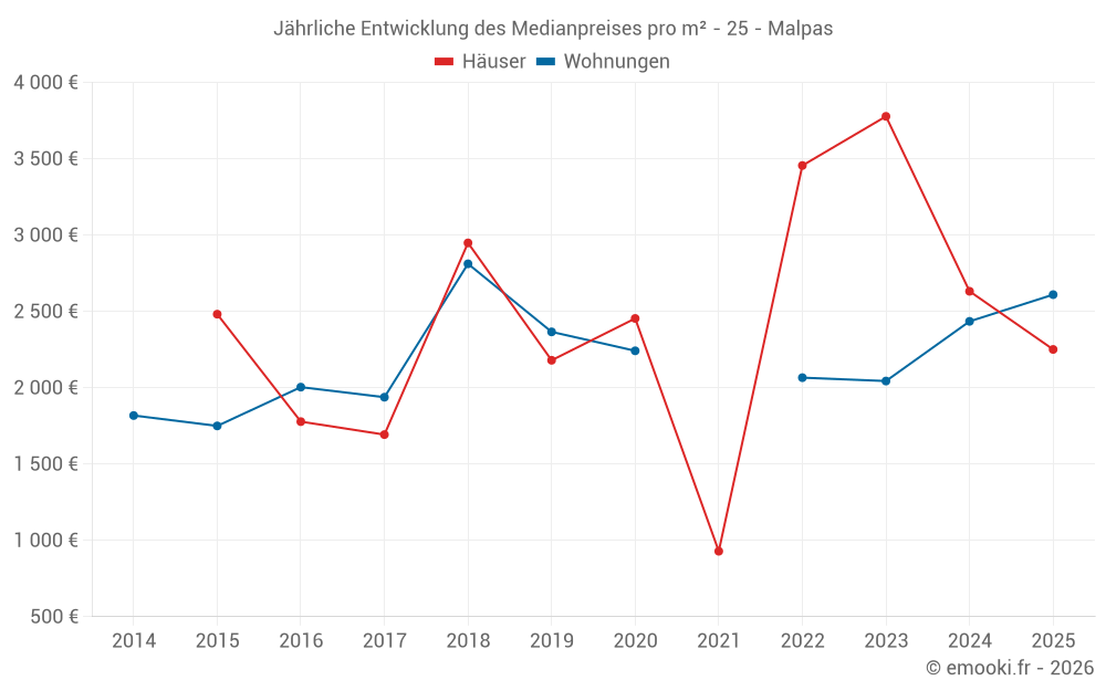 Entwicklung des Medianpreises pro m² von Wohnungen