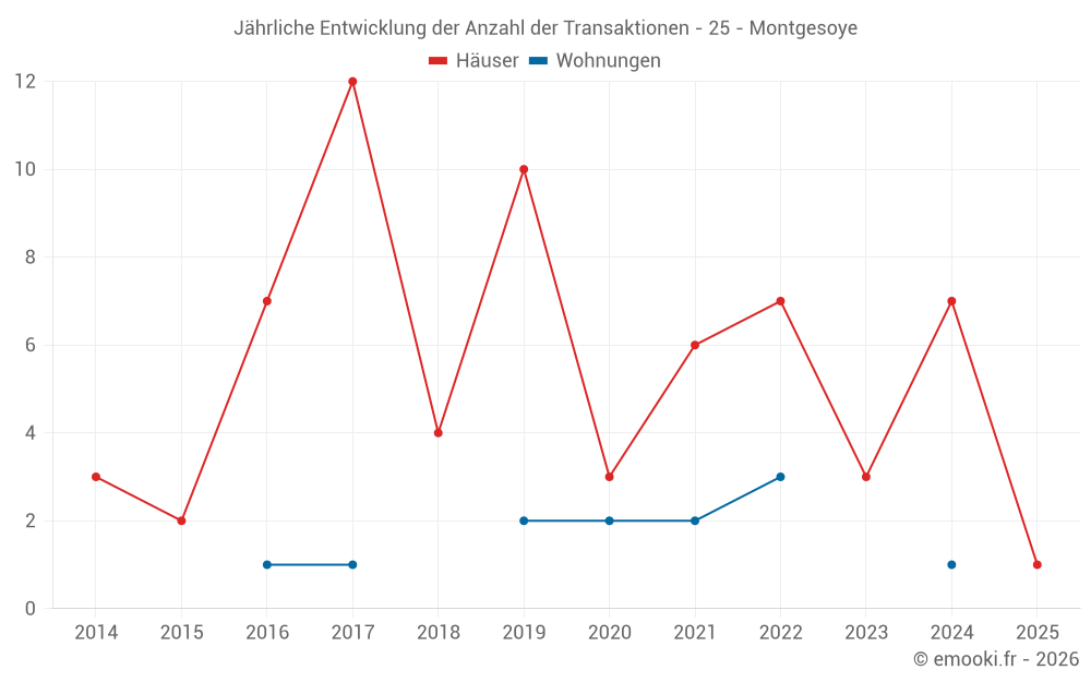 Karte der Immobilienpreise in der Gemeinde Montgesoye, wählen Sie einen Abschnitt, um Transaktionen nach Parzelle zu sehen.