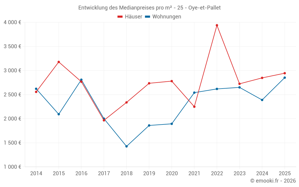 Karte der Immobilienpreise in der Gemeinde Oye-et-Pallet, wählen Sie einen Abschnitt, um Transaktionen nach Parzelle zu sehen.