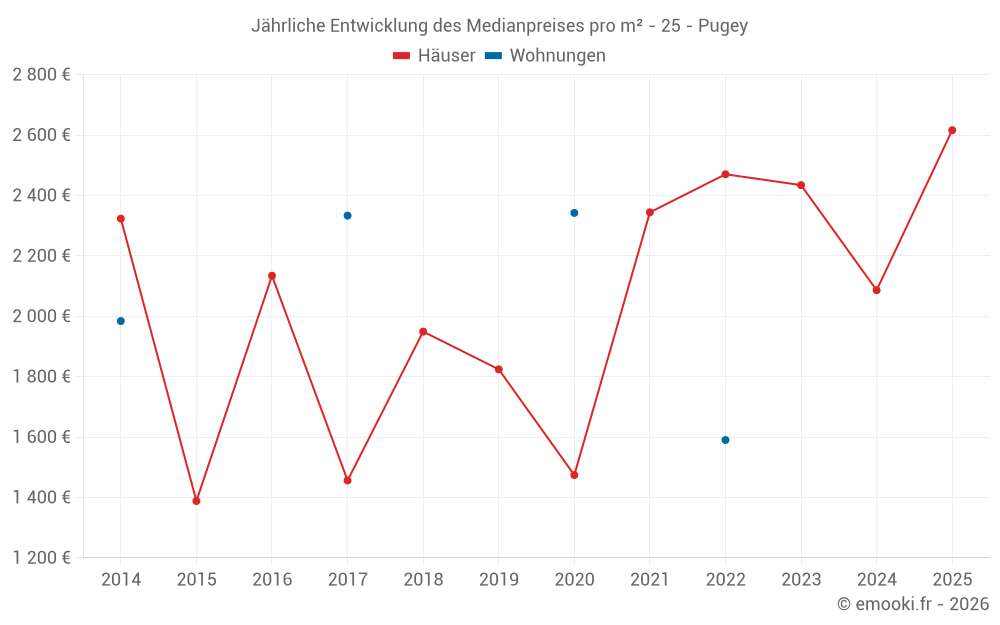 Karte der Immobilienpreise in der Gemeinde Pugey, wählen Sie einen Abschnitt, um Transaktionen nach Parzelle zu sehen.