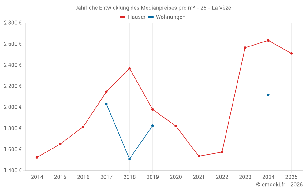 Entwicklung des Medianpreises pro m² von Wohnungen