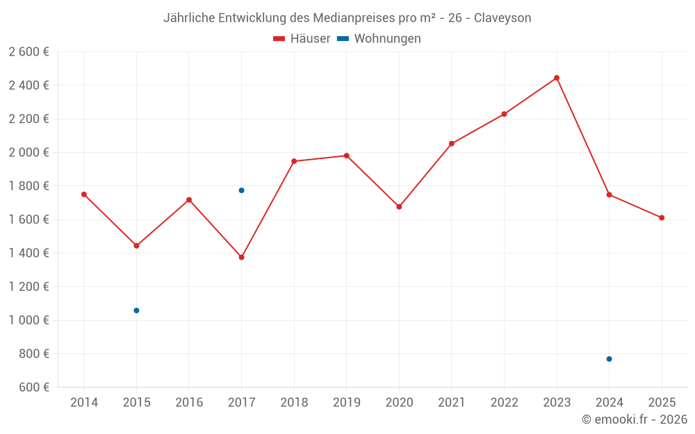 Entwicklung des Medianpreises pro m² von Wohnungen