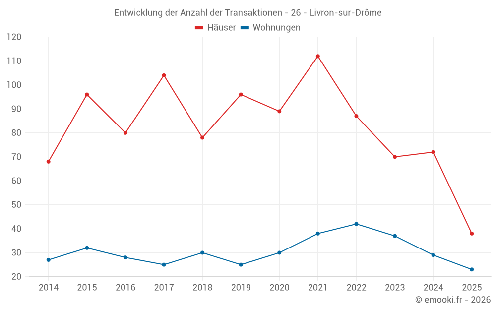Karte der Immobilienpreise in der Gemeinde Livron-sur-Drôme, wählen Sie einen Abschnitt, um Transaktionen nach Parzelle zu sehen.