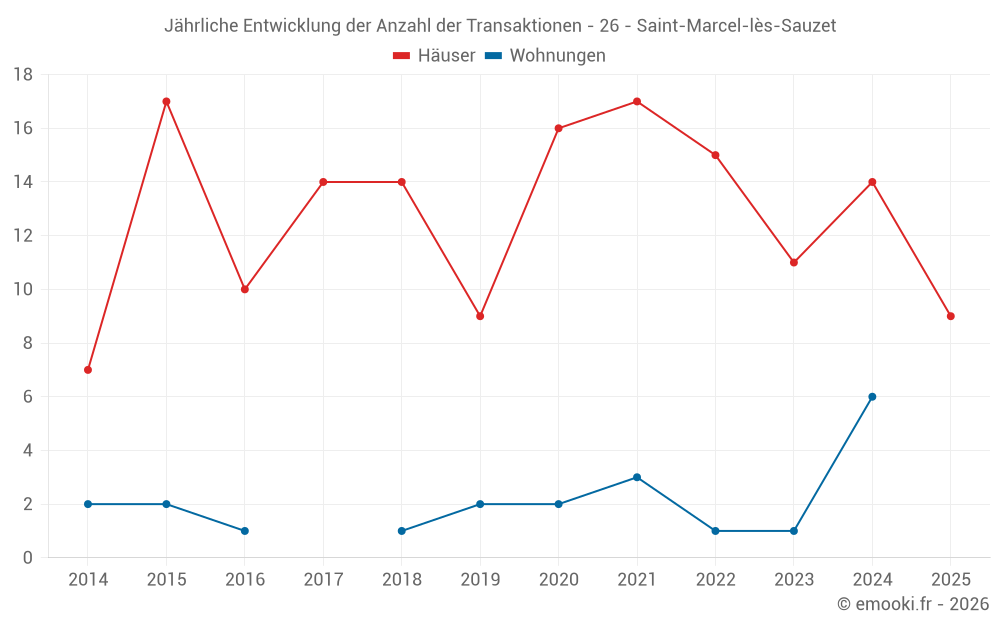 Der Durchschnittspreis auf den 19 Hausgeschäften der letzten 12 Monate in der Gemeinde Saint-Marcel-lès-Sauzet betrug 2 580 € pro Quadratmeter für einen mittleren Immobilienwert von 317 000 €. Über diesen Zeitraum hinweg lagen 60% der Transaktionen zwischen 2 204 und 2 970 € pro Quadratmeter (vom 2. bis zum 8. Dezil).