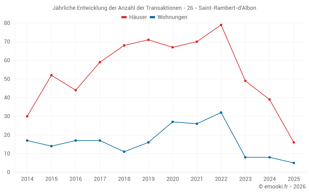Der Durchschnittspreis auf den 37 Hausgeschäften der letzten 12 Monate in der Gemeinde Saint-Rambert-d'Albon betrug 2 042 € pro Quadratmeter für einen mittleren Immobilienwert von 217 000 €. Über diesen Zeitraum hinweg lagen 60% der Transaktionen zwischen 1 717 und 2 440 € pro Quadratmeter (vom 2. bis zum 8. Dezil).
