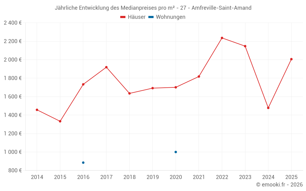 Der Durchschnittspreis auf den 20 Hausgeschäften der letzten 24 Monate in der Gemeinde Amfreville-Saint-Amand betrug 1 966 € pro Quadratmeter für einen mittleren Immobilienwert von 168 500 €. Über diesen Zeitraum hinweg lagen 60% der Transaktionen zwischen 1 437 und 2 123 € pro Quadratmeter (vom 2. bis zum 8. Dezil).