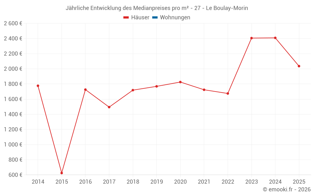 Der Preis pro m² von Häusern ist seit 2 Jahren um 15% gesunken, aber er ist in 8 Jahren um 36% gestiegen.