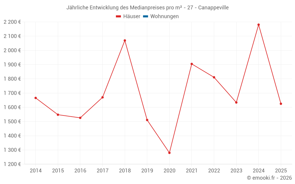 Werte der Preispercentile pro m² über die für den geschätzten Preis jeder Art von Immobilie verwendeten Zeiträume.