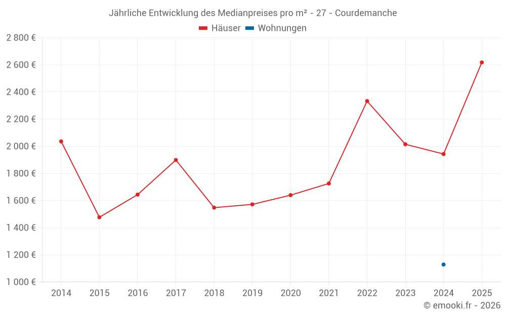 Entwicklung des Medianpreises pro m² von Wohnungen