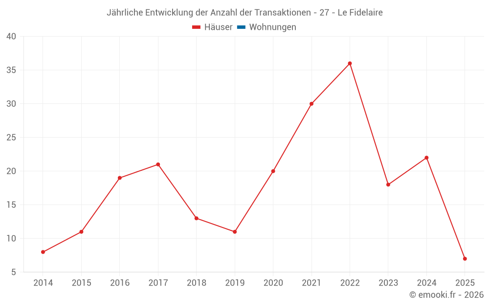 Der Durchschnittspreis auf den 19 Hausgeschäften der letzten 12 Monate in der Gemeinde Le Fidelaire betrug 1 760 € pro Quadratmeter für einen mittleren Immobilienwert von 166 000 €. Über diesen Zeitraum hinweg lagen 60% der Transaktionen zwischen 1 280 und 2 295 € pro Quadratmeter (vom 2. bis zum 8. Dezil).