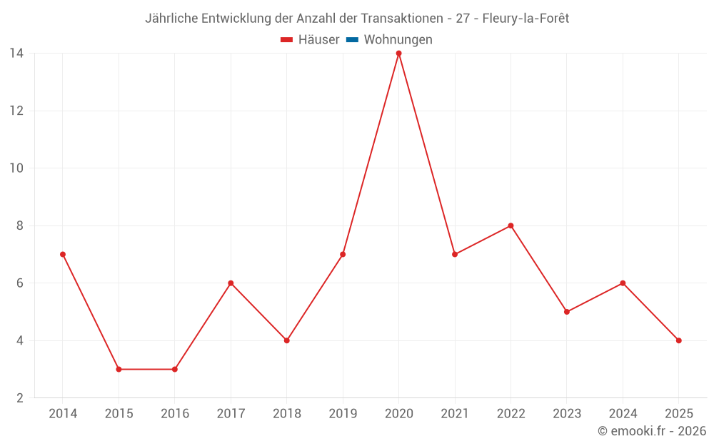 Der Durchschnittspreis auf den 15 Hausgeschäften der letzten 24 Monate in der Gemeinde Fleury-la-Forêt betrug 2 214 € pro Quadratmeter für einen mittleren Immobilienwert von 150 000 €. Über diesen Zeitraum hinweg lagen 60% der Transaktionen zwischen 1 793 und 2 617 € pro Quadratmeter (vom 2. bis zum 8. Dezil).