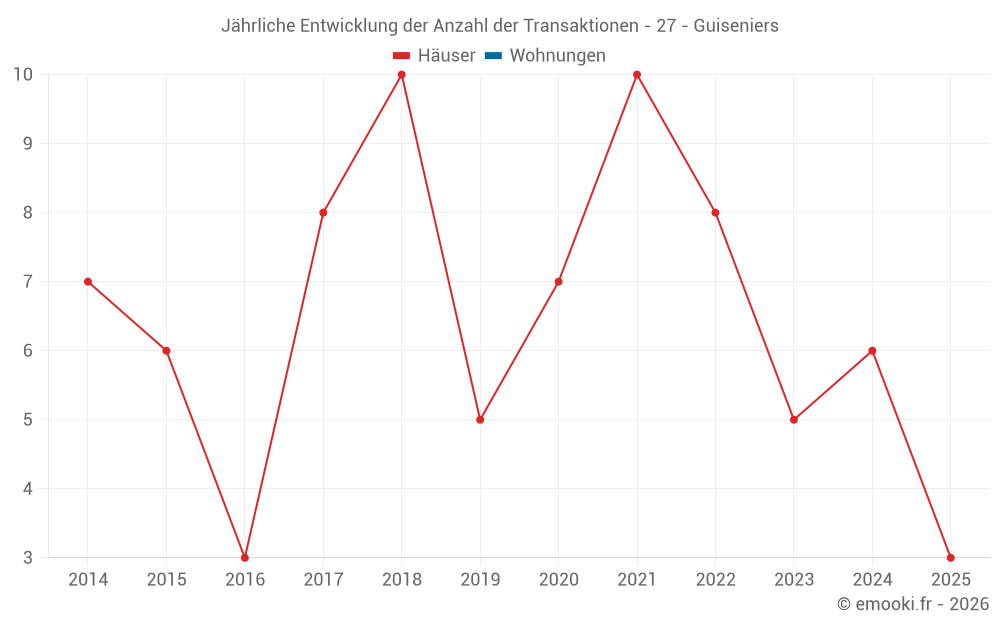 Karte der Immobilienpreise in der Gemeinde Guiseniers, wählen Sie einen Abschnitt, um Transaktionen nach Parzelle zu sehen.