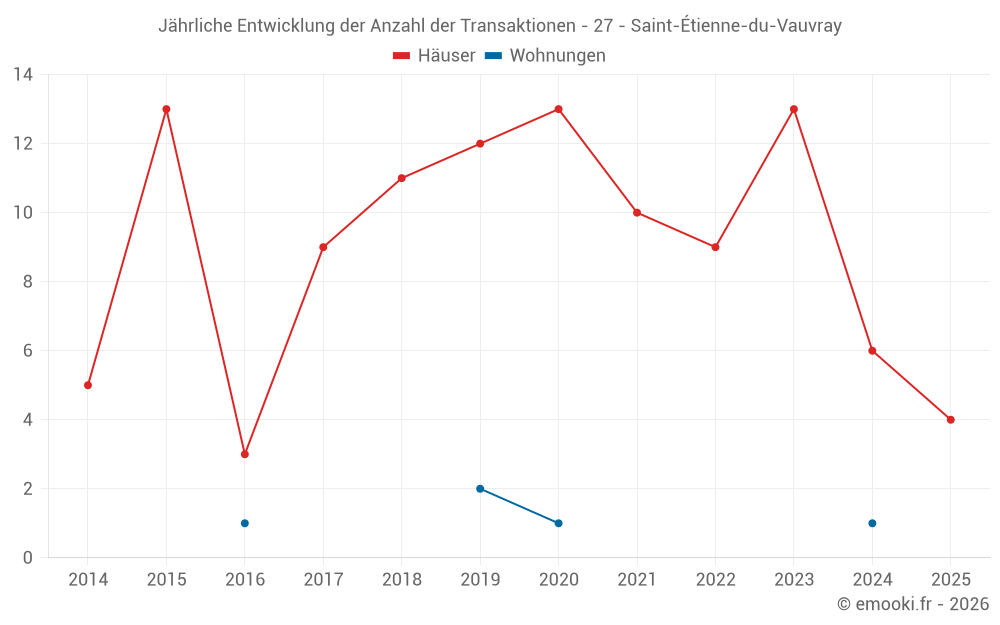 Der Durchschnittspreis auf den 19 Hausgeschäften der letzten 24 Monate in der Gemeinde Saint-Étienne-du-Vauvray betrug 1 720 € pro Quadratmeter für einen mittleren Immobilienwert von 196 000 €. Über diesen Zeitraum hinweg lagen 60% der Transaktionen zwischen 789 und 2 413 € pro Quadratmeter (vom 2. bis zum 8. Dezil).