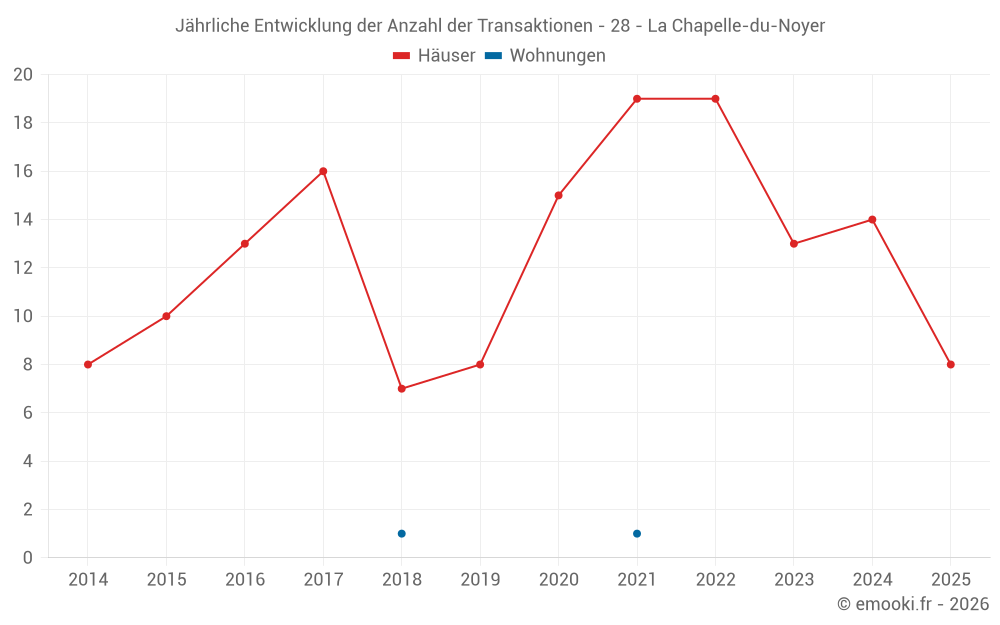 Der Durchschnittspreis auf den 30 Hausgeschäften der letzten 24 Monate in der Gemeinde La Chapelle-du-Noyer betrug 1 528 € pro Quadratmeter für einen mittleren Immobilienwert von 129 500 €. Über diesen Zeitraum hinweg lagen 60% der Transaktionen zwischen 1 086 und 1 878 € pro Quadratmeter (vom 2. bis zum 8. Dezil).