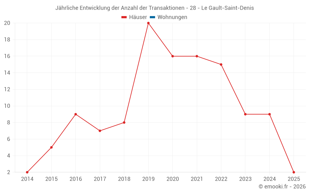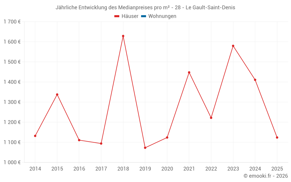 Der Durchschnittspreis auf den 14 Hausgeschäften der letzten 24 Monate in der Gemeinde Le Gault-Saint-Denis betrug 1 514 € pro Quadratmeter für einen mittleren Immobilienwert von 148 625 €. Über diesen Zeitraum hinweg lagen 60% der Transaktionen zwischen 846 und 1 784 € pro Quadratmeter (vom 2. bis zum 8. Dezil).