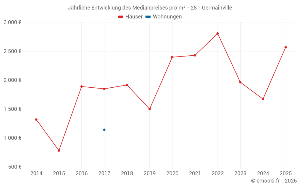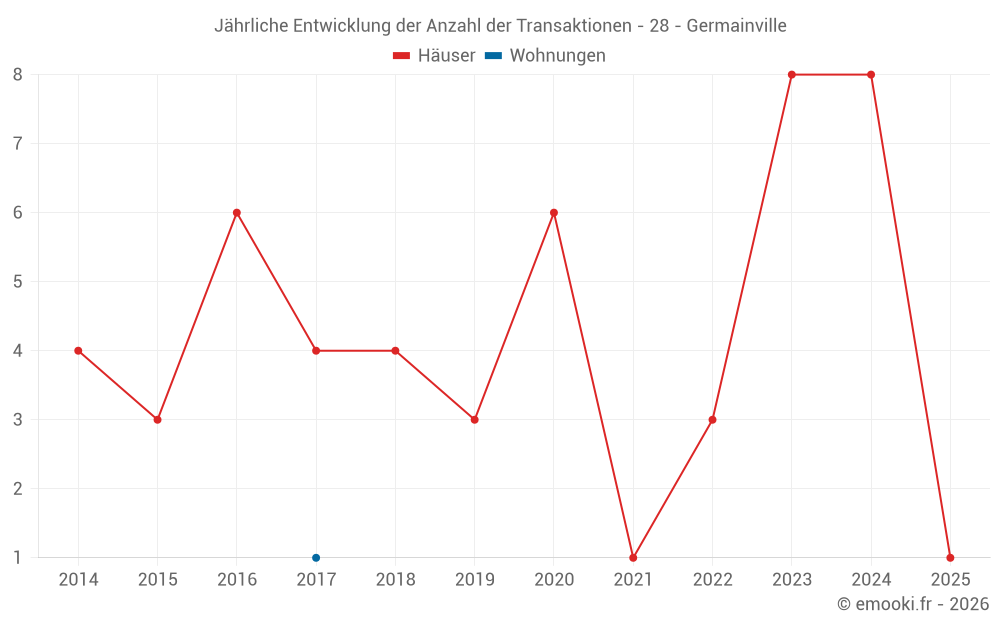 Karte der Immobilienpreise in der Gemeinde Germainville, wählen Sie einen Abschnitt, um Transaktionen nach Parzelle zu sehen.