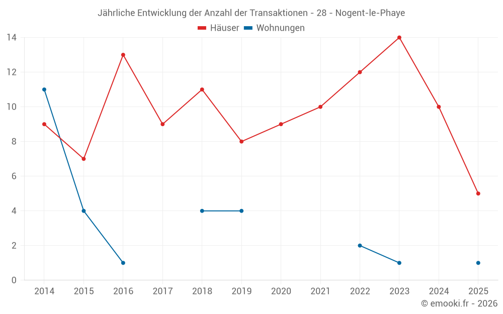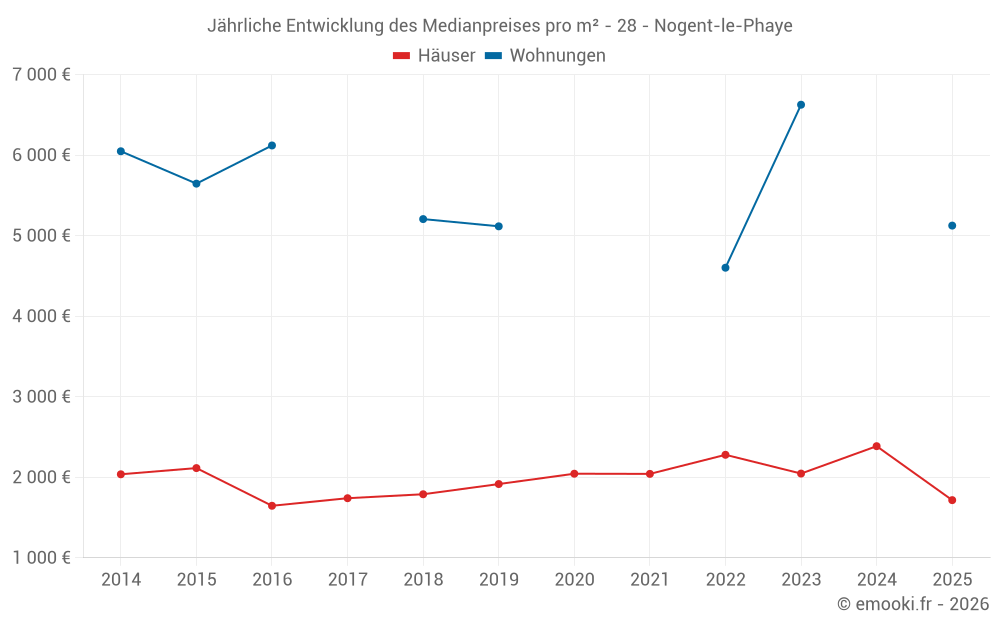 Der Durchschnittspreis auf den 20 Hausgeschäften der letzten 24 Monate in der Gemeinde Nogent-le-Phaye betrug 2 178 € pro Quadratmeter für einen mittleren Immobilienwert von 195 000 €. Über diesen Zeitraum hinweg lagen 60% der Transaktionen zwischen 1 657 und 2 856 € pro Quadratmeter (vom 2. bis zum 8. Dezil).