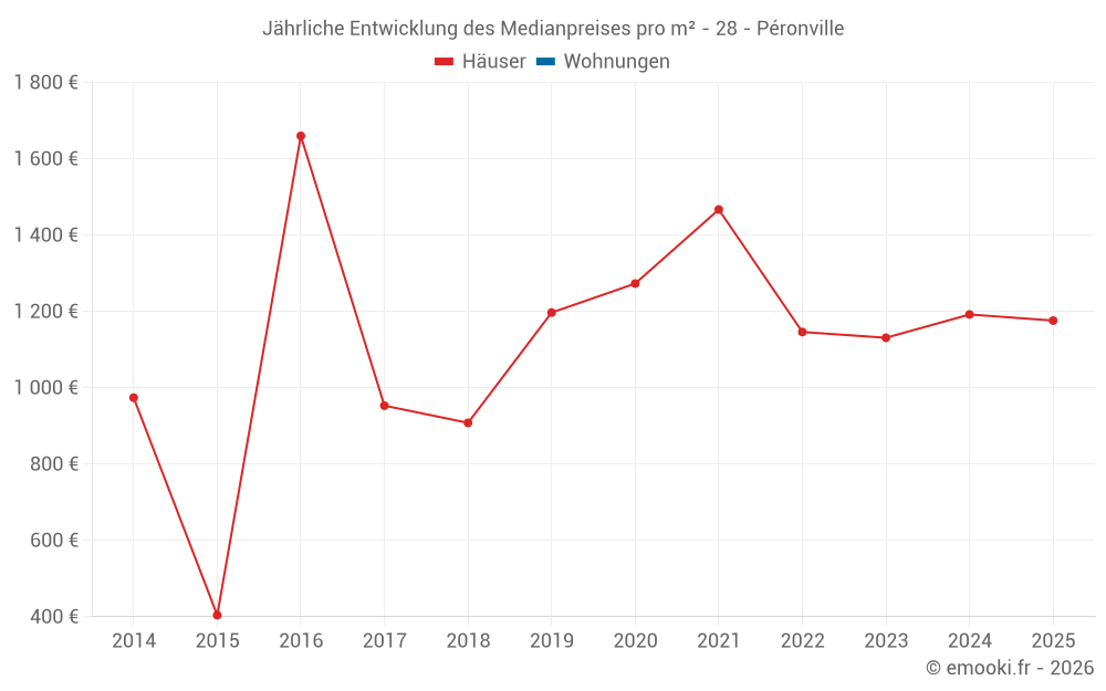 Der Preis pro m² von Häusern ist seit 7 Jahren um 30% gestiegen, aber er ist in 9 Jahren um 29% gesunken.