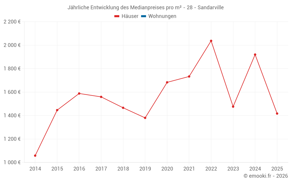 Entwicklung des Medianpreises pro m² von Häusern