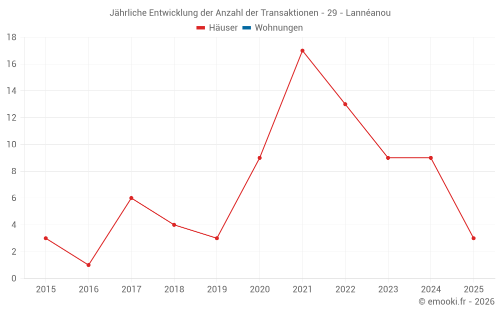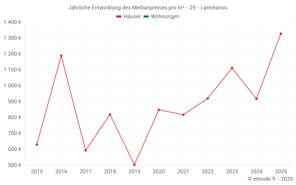 Der Durchschnittspreis auf den 19 Hausgeschäften der letzten 24 Monate in der Gemeinde Lannéanou betrug 1 000 € pro Quadratmeter für einen mittleren Immobilienwert von 95 000 €. Über diesen Zeitraum hinweg lagen 60% der Transaktionen zwischen 765 und 1 506 € pro Quadratmeter (vom 2. bis zum 8. Dezil).