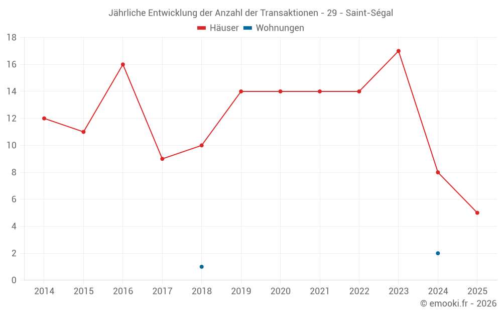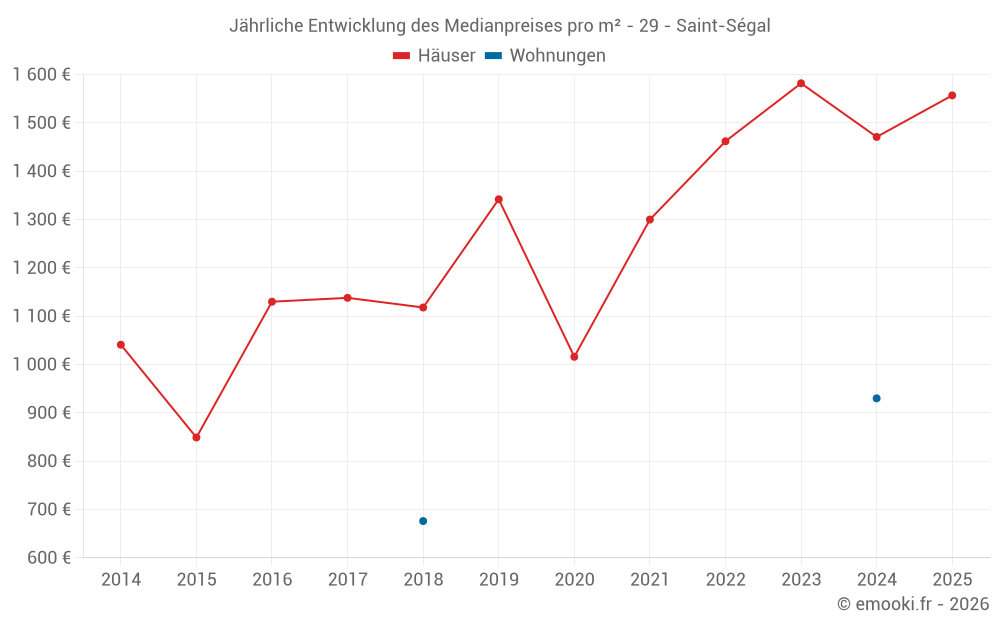 Der Durchschnittspreis auf den 25 Hausgeschäften der letzten 24 Monate in der Gemeinde Saint-Ségal betrug 1 569 € pro Quadratmeter für einen mittleren Immobilienwert von 150 000 €. Über diesen Zeitraum hinweg lagen 60% der Transaktionen zwischen 749 und 2 278 € pro Quadratmeter (vom 2. bis zum 8. Dezil).